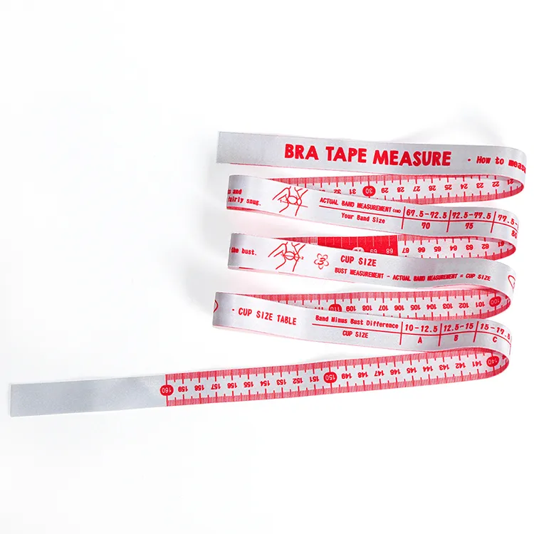 One side features clear measurement markings, while the other side is printed with illustrated bra measuring instructions, making it easy for anyone to measure at home. Ideal for lingerie brands, fitting rooms, and personal use, this tape helps customers confidently find their correct bra size.